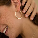 Pendientes en forma de aro disponibles en chapado en Oro de 18kt (2 micras) o en plata de Ley (3micras).