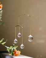 3 bolas pequeñas que pesan lo mismo que una grande hacen que este móvil-atrapaluz se denomine Equilibrio. En tu espacio elegido predominarán más destellos pequeños que grandes, creando así un juego de luces sutil y abundante.