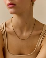 El collar Eileen está formado por una cadena vintage, mide 44 cm de largo y está chapado en Oro de 18Kt con 2 micras de grosor. La base es de latón libre de níquel y de plomo.