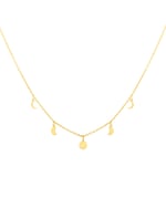 Hemos creado este collar con cadena que mide 40 cm de largo y le cuelgan 5 piezas muy pequeñitas simbolizando el ciclo lunar.