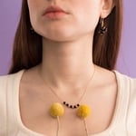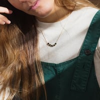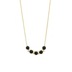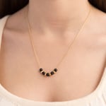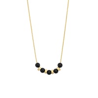 El collar Hipnos está formado por varias bolas de latón (libre de níquel y de plomo) y de Turmalina Negra, de diferentes tamaños e intercaladas.
