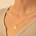 Todos los collares son iguales y lo único que varia de cada uno es la constelación. Miden 50 cm de largo y la chapita 16 mm de diámetro. Están chapados en Oro de 18kt con 2 micras de grosor. La base es de latón libre de níquel y de plomo.