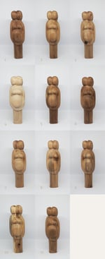 Estas réplicas de la escultura original, están hechas con madera maciza de nogal. Todas las maderas utilizadas provienen explotaciones forestales sostenibles. Cada una de ellas tiene tonos y nudos distintos, por eso hemos puesto en la última fotografía todos los modelos para que puedas elegir la que más te guste.