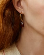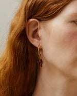 Los pendientes Esmeralda están formados con un Aro Fino M chapado en Oro de 25 mm de diámetro. Cuelga una cuenta de color caramelo marrón de cristal checo que se puede quitar y poner y así puedes tener varias opciones de pendientes.