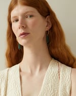Los pendientes Esmeralda están formados con un Aro Fino M chapado en Oro de 25 mm de diámetro. Cuelga una cuenta de color verde esmeralda de cristal checo que se puede quitar y poner y así puedes tener varias opciones de pendientes. La cuenta tiene forma alargada con forma de gota y mide 25 mm.