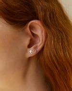 Los pendientes Golondrinas hay dos tamaños disponibles. La talla S miden 6 mm y la talla M miden 10 mm de altura. Llevan una tuerca para cerrarlos a presión.