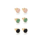 Estos pendientes están formados por un pequeño cabujón redondo con diferentes minerales. De nuevo con los minerales que predominan esta coleccíon Recuerdo: Cuarzo Rosa, Aventurina y Ónix Negro. Puedes elegir cualquiera de las 3 opciones.