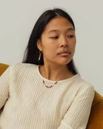 Los Pendientes Solia están formados por un aro con una cuenta cilíndrica de Rodocrosita Rosa, un separador dorado, una bolita de 8mm de Calcita Amarilla y una bolita de 6mm de Apatito Azul.