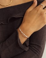 El brazalete Boreal se adapta a cualquier tipo de muñeca ya que es abierta y se puede moldear para ajustarla a tu medida. Su tamaño original es de 62mm de ancho por 50mm de alto. Con un diseño de dos hilos entrelazados, le da un aspecto atemporal y moderno.