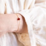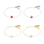 La pulsera Atenea está formada por una bolita en el centro y cuatro minerales diferentes a elegir; Fluorita, Amatista, Cuarzo y Cornalina.